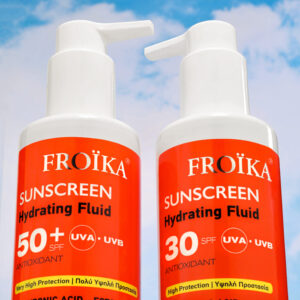 Τα προϊόντα Sun Care SPF 30 της Froika παρέχουν υψηλή φωτοπροστασία για καθημερινή χρήση σε συνθήκες έντονης ηλιοφάνειας από τις πρώτες κιόλας μέρες έκθεσης στον ήλιο. Προτείνεται για την προστασία κατά τη διάρκεια άθλησης, όλη τη διάρκεια του έτους. Δεν περιέχει paraben και προτείνεται για υπερευαίσθητα, μη ανεκτικά στον ήλιο δέρματα. Είναι διαθέσιμη σε μορφή κρέμας, γαλακτώματος και spray:- Froika Suncare Cream SPF 30 / υψηλή προστασία για το πρόσωπο