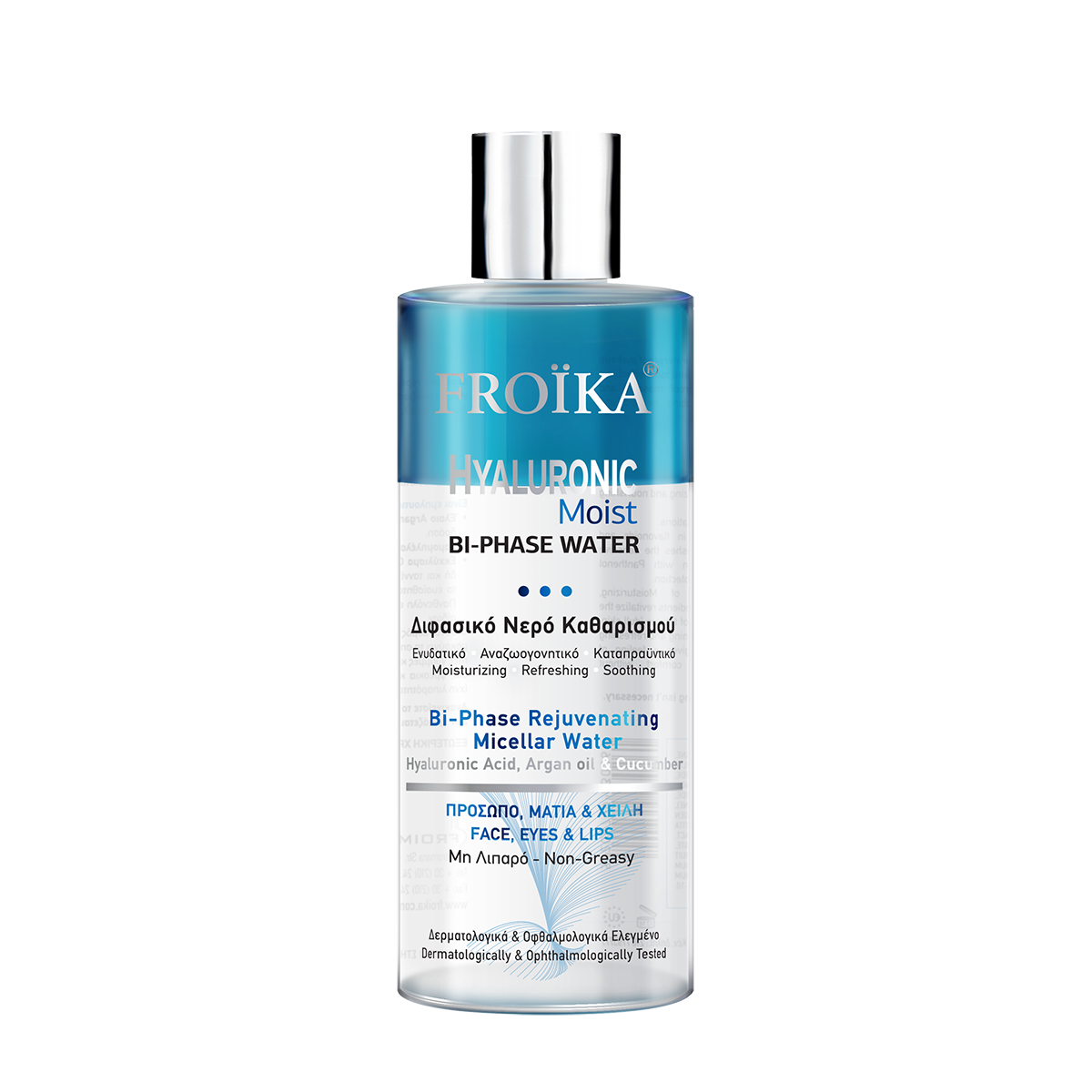 Two-phase cleaning water with micelles suitable to remove even the indelible makeup, hydrates, rejuvenates and soothes the skin.