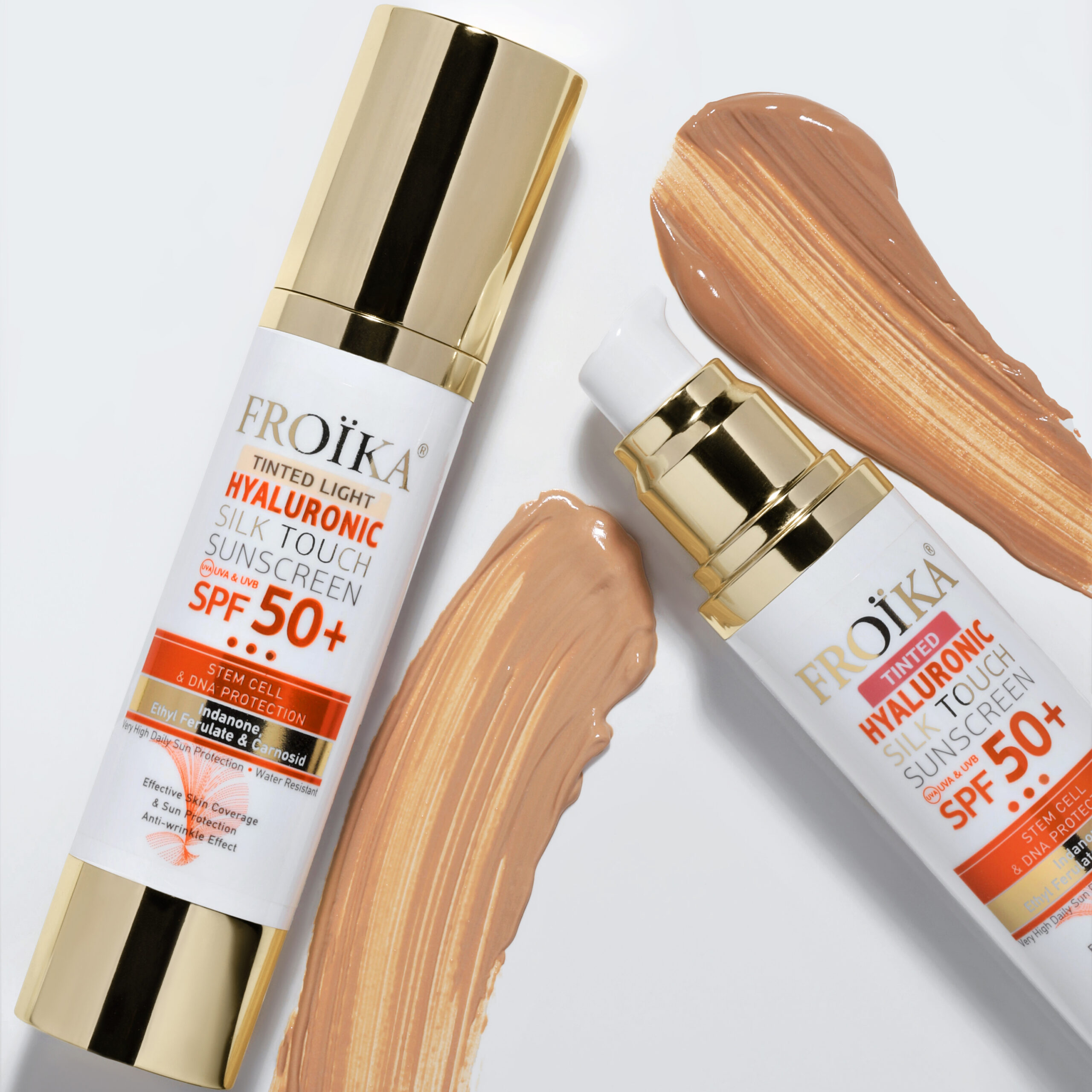 Froika Hyaluronic Silktouch Sunscreen SPF50+ Tinted is a new unique sunscreen which is based on the innovative technology of 3rd generation elastomers, leaves a silky matte feeling on the skin and provides primary sun protection of a wide range of UVA & UVB, while in the second stage, due to the beneficial of other antioxidant molecules, provides versatile protection inside the skin. Deeply moisturizes the skin due to hyaluronic acid while at the same time has an anti-wrinkle effect as wrinkles, blemishes and acne scars become less visible.