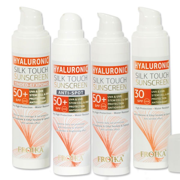 The line Hyaluronic Silk Touch αποτελεί την καλύτερη επιλογή για υψηλή φωτοπροστασία αλλά και βελούδινο, ματ αποτέλεσμα.