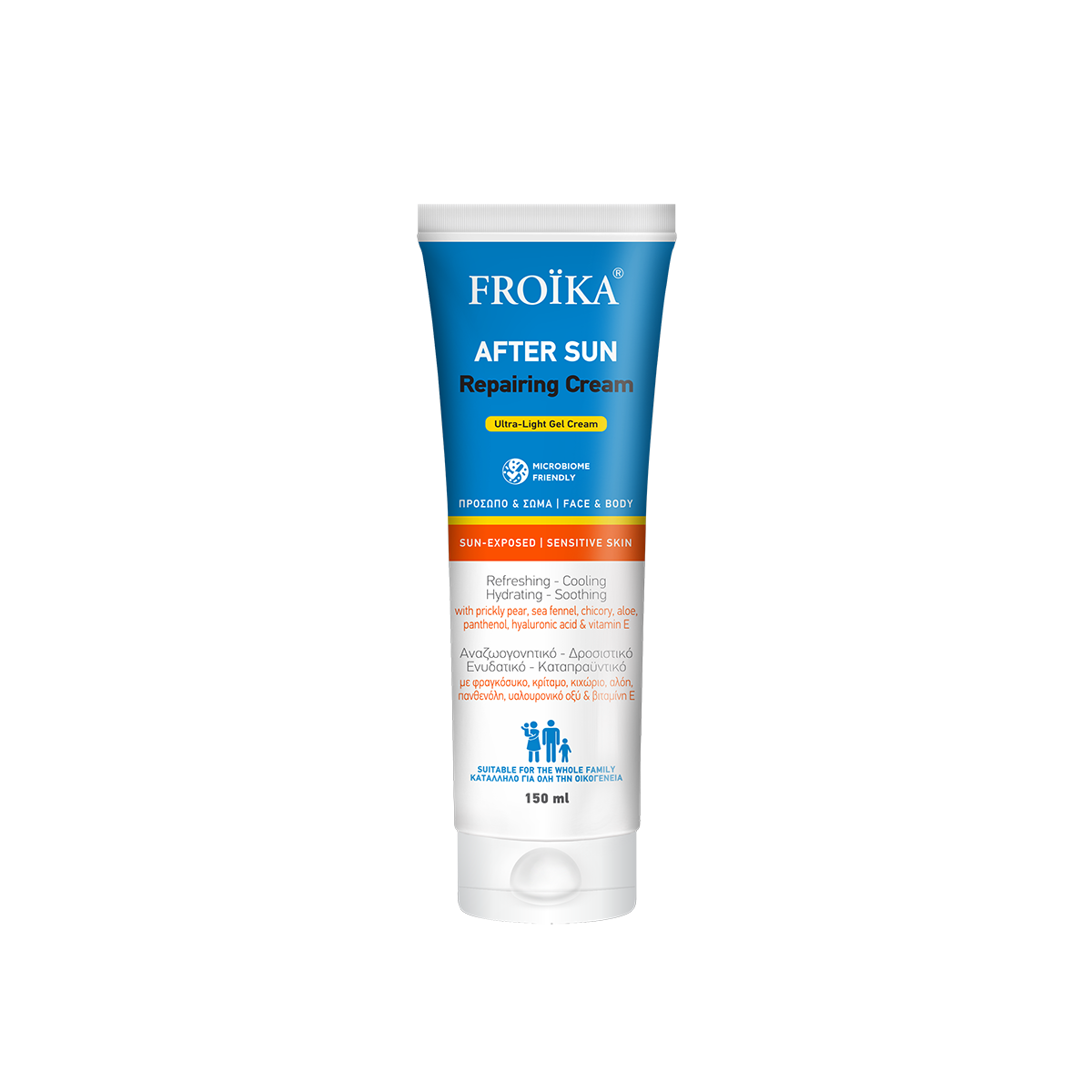 Καταπραΰνει, ενυδατώνει και προστατεύει το δέρμα που έχει εκτεθεί στην ηλιακή ακτινοβολία. Με φραγκόσυκο, κρίταμο, αλόη βέρα, πανθενόλη, υαλουρονικό οξύ και βιταμίνη Ε, επαναφέρει την ελαστικότητα, μειώνει ερεθισμούς και κοκκινίλες, διατηρώντας την υγρασία του δέρματος, ενώ τα δροσιστικά της αποτελέσματα χαρίζουν άμεση ανακούφιση. Ελαφριά σύνθεση που απορροφάται άμεσα, αφήνοντας την επιδερμίδα αναζωογονημένη και απαλή.